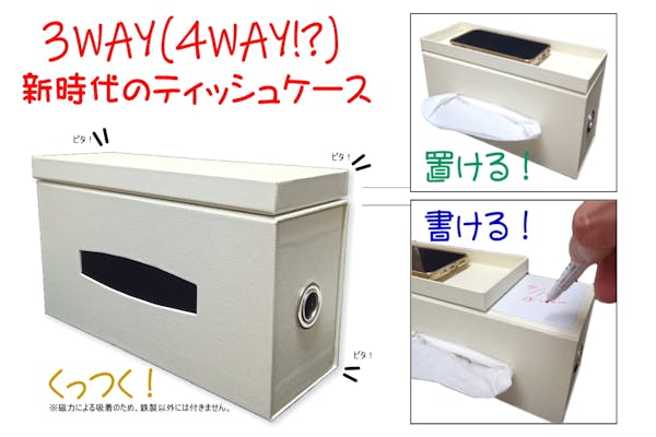 FINISH募集終了新時代のティッシュケース!置ける、書ける、ひっつくの3WAY