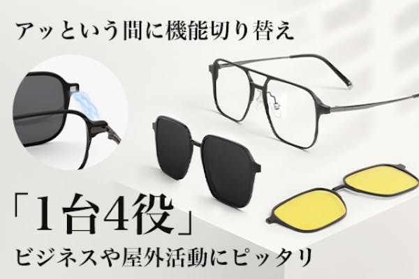 FINISH募集終了ワンタッチで1台4役、お好みに!マグネット式複数レンズのJOOTアイウェア