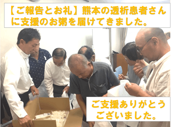 SUCCESS募集終了熊本に透析・腎臓病患者専用の非常食を届けたい!