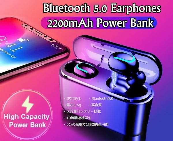 SUCCESS募集終了日本上陸!スマホも充電可能!バッテリー付きワイヤレスイヤホン「イヤホンBOX」