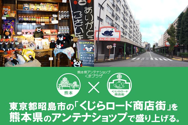 募集終了FINISH募集終了東京都昭島市の「くじらロード商店街」を熊本県のアンテナショップで盛り上げる。