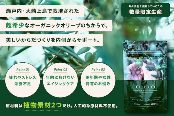 美しいからだづくりと島の環境維持に貢献する、大人女性のためのオリーブサプリ。