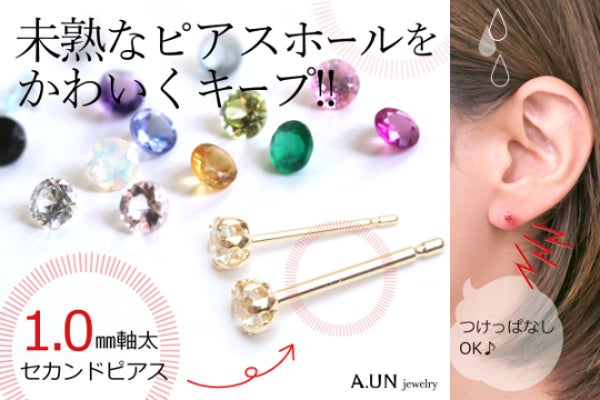 18金誕生石セカンドピアス 未熟なピアスホールは1mm軸太で安定!つけっぱしOK