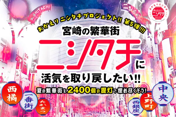 宮崎の繁華街に活気をもう一度!! 2400個の提灯で夏のニシタチを盛り上げたい!