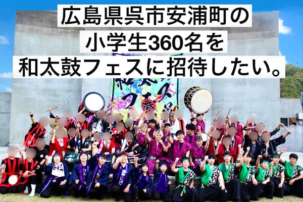 SUCCESS募集終了広島県呉市安浦町の小学生360名を和太鼓フェスに招待したい。