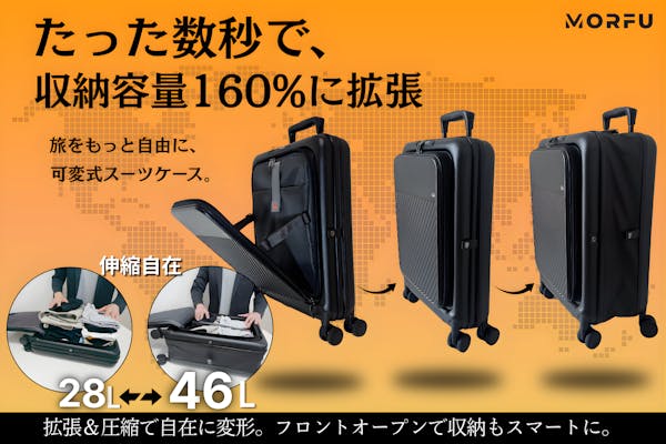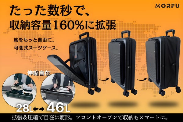 旅に合わせて形が変わる。収納力も自由自在、可変式スマートスーツケース。MORFU