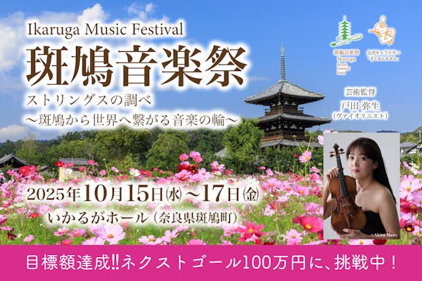 募集終了SUCCESS募集終了世界的ヴァイオリニストと創る、斑鳩音楽祭プロジェクト!