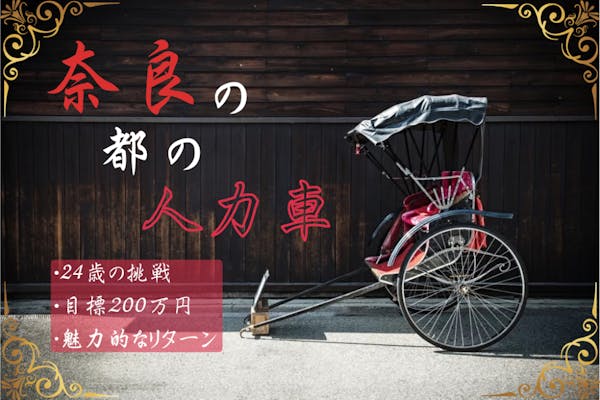 募集終了SUCCESS募集終了【24歳の挑戦】《日本の始まりの地》古都奈良に人力車を走らせたい!