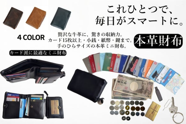 手のひらサイズでカード25枚収納。 牛革で仕立てた“全部入る”多機能ミニ財布