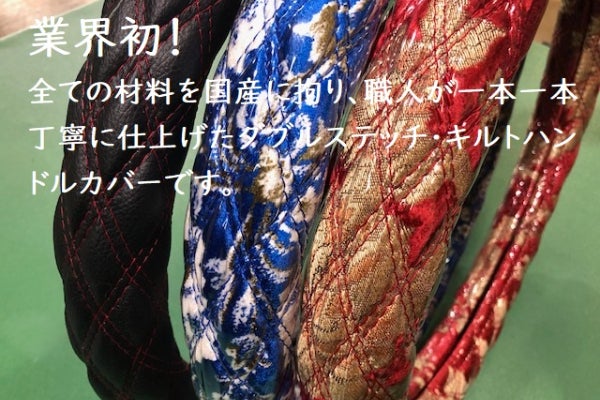業界初!純国産のダブルステッチキルトの金華山ハンドルカバーを製造販売