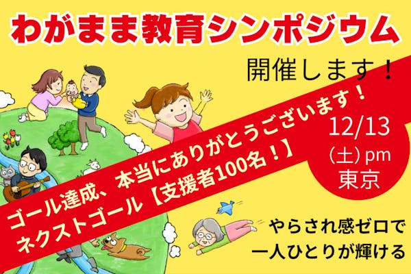 SUCCESS募集終了【12/13 東京】わがまま教育シンポジウム開催!やらされ感0の教育を広めたい!