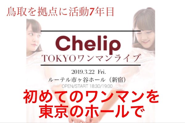 SUCCESS募集終了鳥取を拠点に7年目の挑戦!Chelip初のワンマンを東京のホールで成功させたい