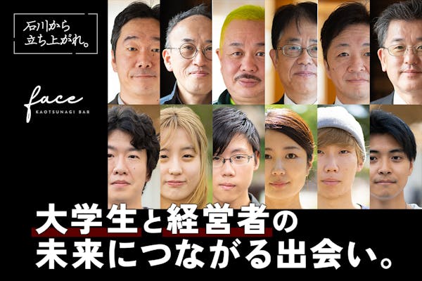 SUCCESS募集終了石川の大学生と経営者を繋ぐ【KAOTSUNAGI BAR face】を創りたい!