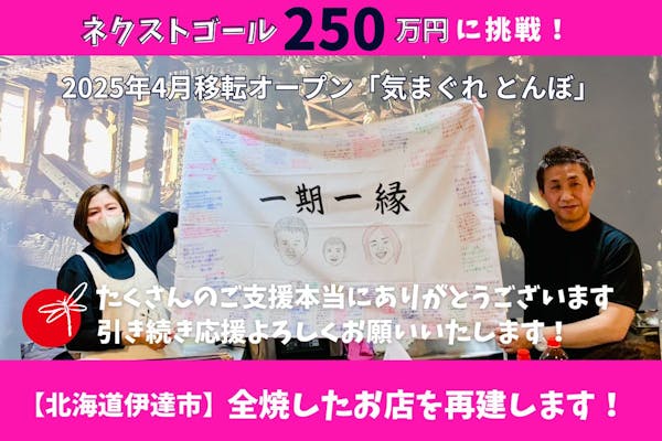 SUCCESS募集終了2025年4月「気まぐれ とんぼ」を移転オープン!火事で全焼からの再建に挑戦!