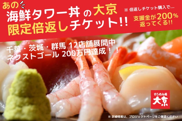 あの海鮮タワー丼の「大京」が限定倍返しチケットを還元!食育体験を届けたい!