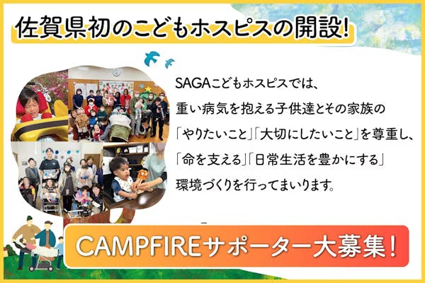 SUCCESS募集終了重い病気の子供達と家族の為の安らぎの場所、佐賀県初のこどもホスピス運営にご支援を