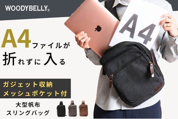 SUCCESS募集終了満員電車もちょっとしたお出かけも手ぶらで! A4サイズでお洒落なボディバッグ!