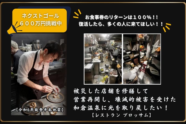 被災した店舗を修繕して営業再開し、壊滅的被害を受けた和倉温泉に光を取り戻したい!