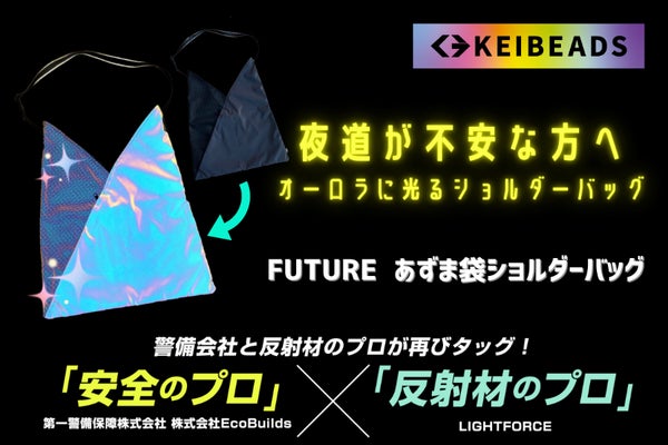 夜道の安全を第一に考えたオーロラに光るあずま袋ショルダーバッグ!前面反射で機能的