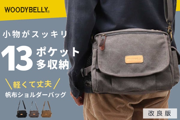 13ポケット分別収納で小物がスッキリ整頓!歩きやすい軽量帆布ショルダーバッグ