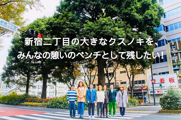 新宿二丁目の大きなクスノキを、みんなの憩いのベンチとして残したい!