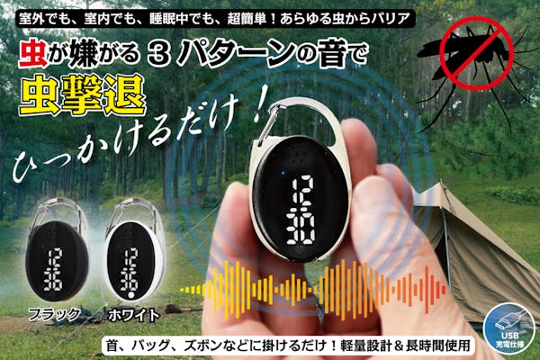 募集終了SUCCESS募集終了どこでも引っ掛け/いや~な虫を超音波で撃退!充電式 蚊よけ。化学薬品ZERO。