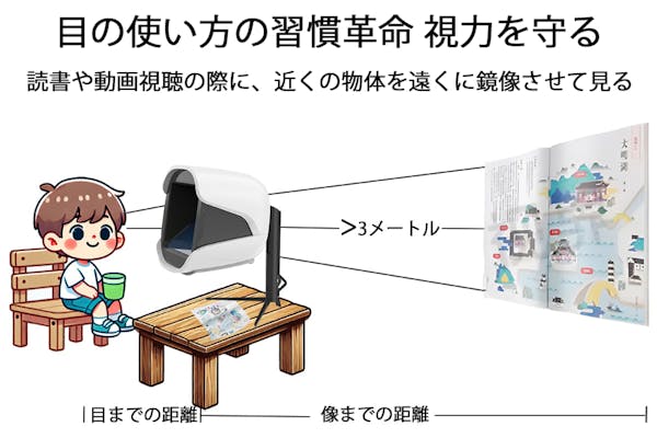 目の使い方の習慣革命 視力を守る 近くの物を遠くに鏡像させて見る 特許出願中