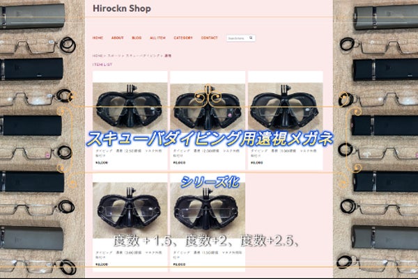 シリーズ化したスキューバダイビング用遠視用メガネを広告する