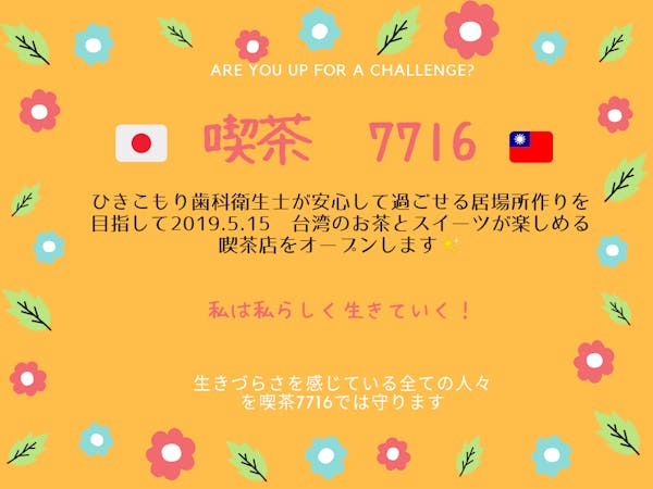 SUCCESS募集終了ひきこもり歯科衛生士が台湾のお茶とスイーツのお店を開業します!