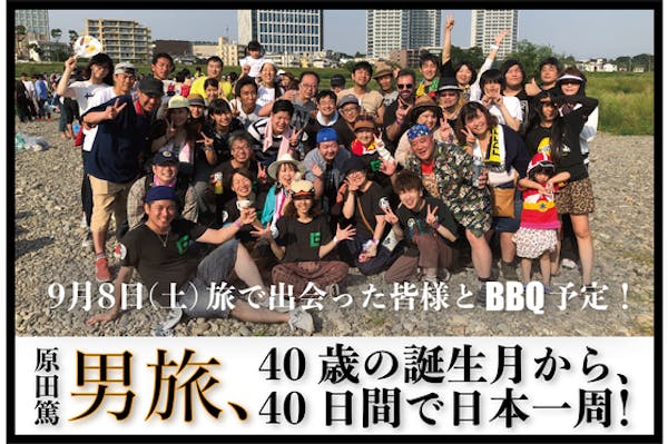SUCCESS募集終了男旅 原田篤の40歳の誕生月から40日間で日本一周!