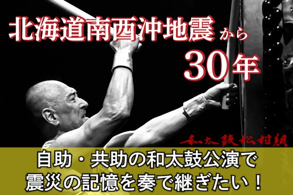 SUCCESS募集終了北海道南西沖地震から30年。自助・共助の和太鼓公演で震災の記憶を奏で継ぎたい!