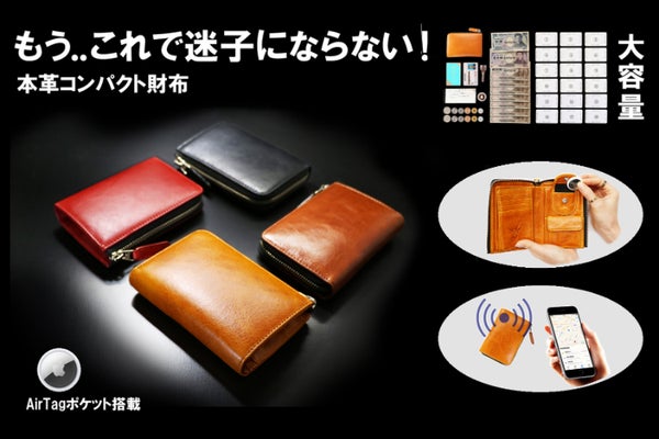 AirTagが入る便利なポケットを搭載!コンパクトながらも大容量の本革財布!