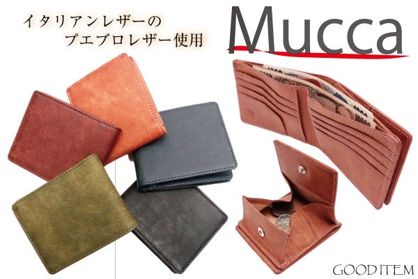 【Mucca】イタリアンレザーのプエプロレザー使用! 収納性抜群の二つ折財布!