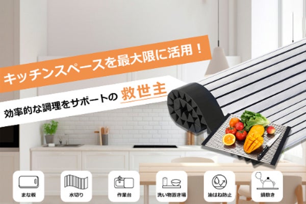 まな板にも、水切りラックにも!丸まる収納できる「マルチキッチン用ラック」