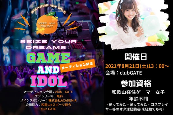 募集終了FINISH募集終了和歌山発!「歌って踊る劇場型ゲーマーアイドル発掘PROJECT」