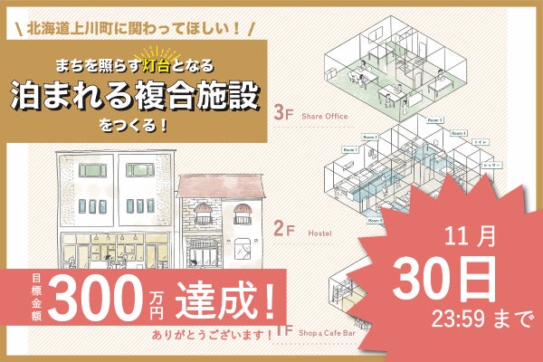 北海道上川町に関わってほしい!まちを照らす灯台となる泊まれる複合施設をつくる!