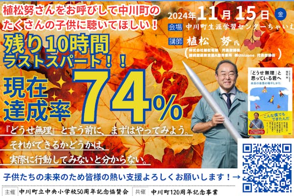 募集終了SUCCESS募集終了未来を拓くリーダーを育てるために! 中川町立中央小学校50周年記念式典講演会