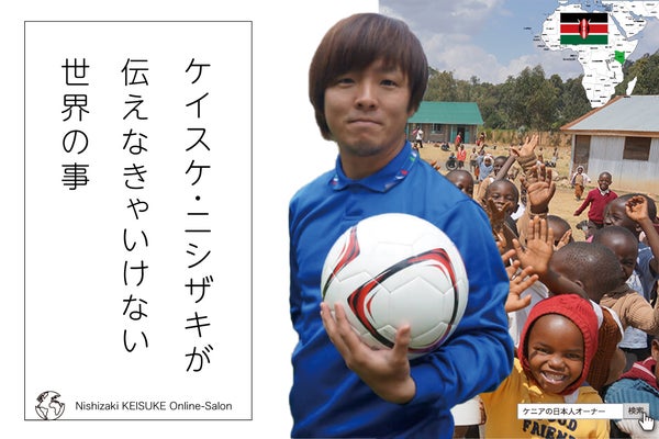 ケニアリーグ所属サッカークラブの日本人オーナー兼選手・西﨑圭介によるオンラインサロン。〜5大陸70ヶ国を旅して周ったのは、地球の全てを知りたかったから。彼が辿り着いたのは東アフリカ・ケニア・ニャフルルという村。地球を旅する日本人オーナー【 西﨑 圭介 】の旅はまだまだ続きます 〜
