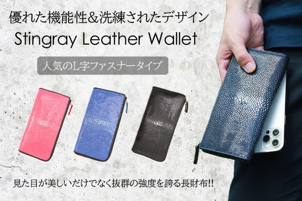 希少素材「海の宝石」と呼ばれるスティングレイ(エイ革)を使用した強度抜群の長財布