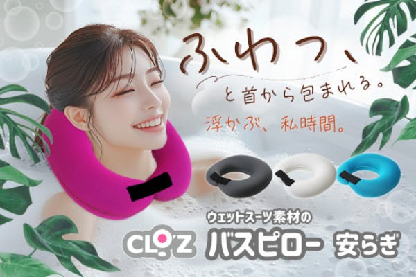 募集終了SUCCESS募集終了「ふわっ、と首から包まれる。」CRゴム製 首にかけるバスピロー「安らぎ」誕生!