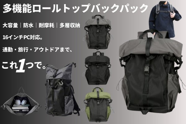 【大容量×防水】雨の日も安心。拡張60cmのロールトップ多機能バックパック