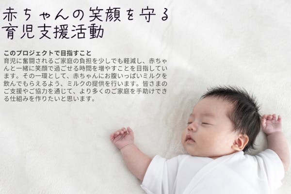 募集終了SUCCESS募集終了ミルクで広がる笑顔の輪:赤ちゃんの健やかな未来を応援