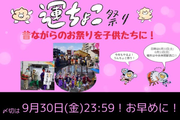 募集終了SUCCESS募集終了【運ちょこ祭り】で街づくり!世代を超えて楽しむお祭りをここから伝えたい!