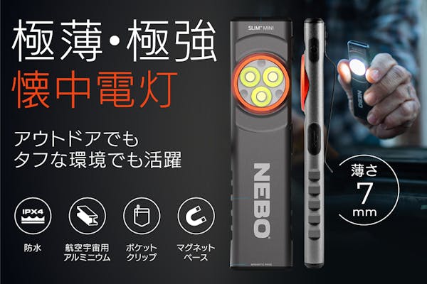 わずか7mmのコンパクト!薄くてタフな相棒懐中電灯「NEBOポケットライト」