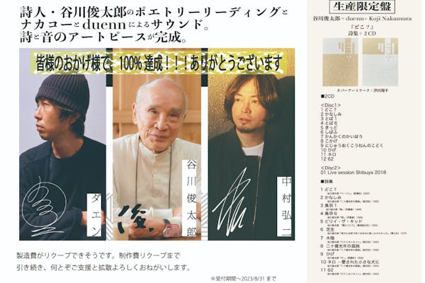 募集終了SUCCESS募集終了【詩集+2CD】谷川俊太郎 + ダエン+ 中村弘二 『どこ?』※生産限定盤