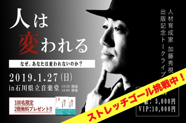 「人は変われる」人材育成家・加藤秀視講演会を開催したい!