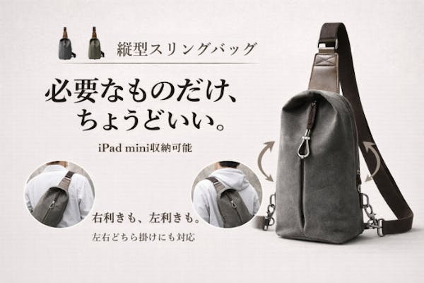 手ぶらで身軽。iPad miniまで収まる“大人の縦型スリングバッグ”