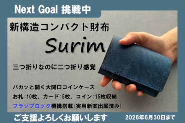フラップロックで二つ折り感覚の三つ折りコンパクト財布「Surim」