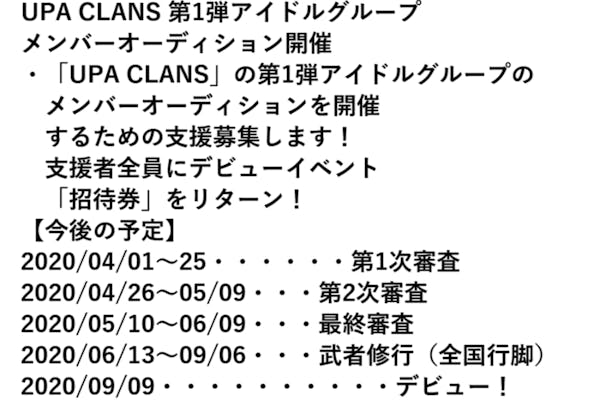 UPA CLANS 第1弾アイドルグループメンバーオーディション開催