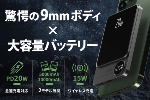 極薄9mmのアルミボディに全てを搭載した、世界最小級モバイルバッテリー誕生!